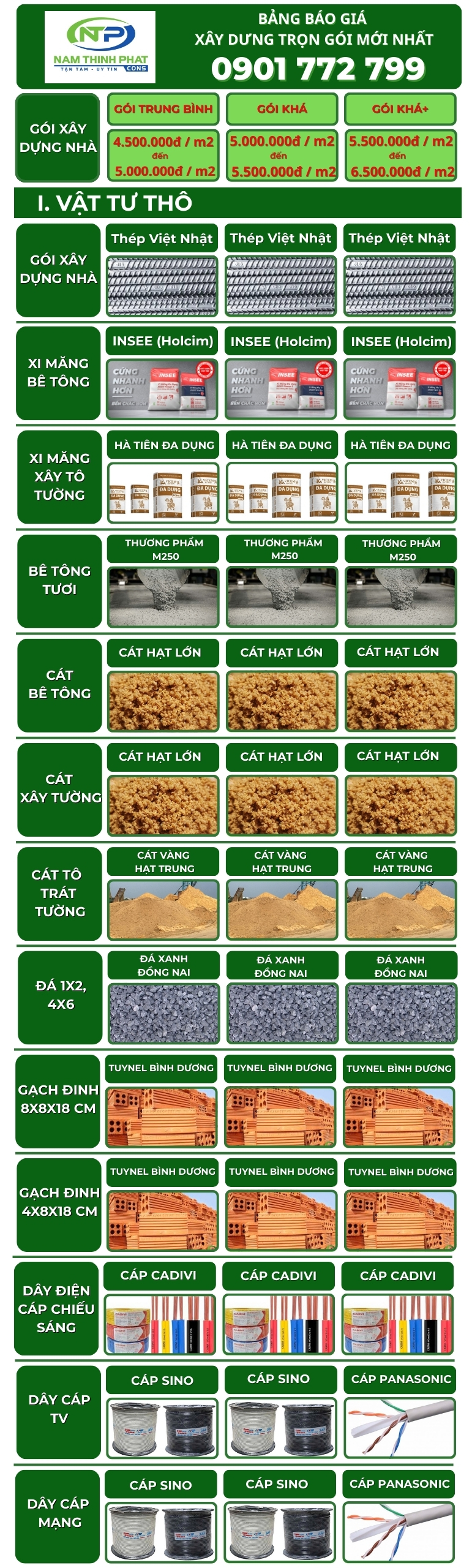 Theo đó, báo giá xây nhà trọn gói của Nam Thịnh Phát đi đôi với chất lượng, vật liệu sử dụng, chính sách bảo hành nhà mà Nam Thịnh Phát cam kết và bàn giao cho gia chủ.