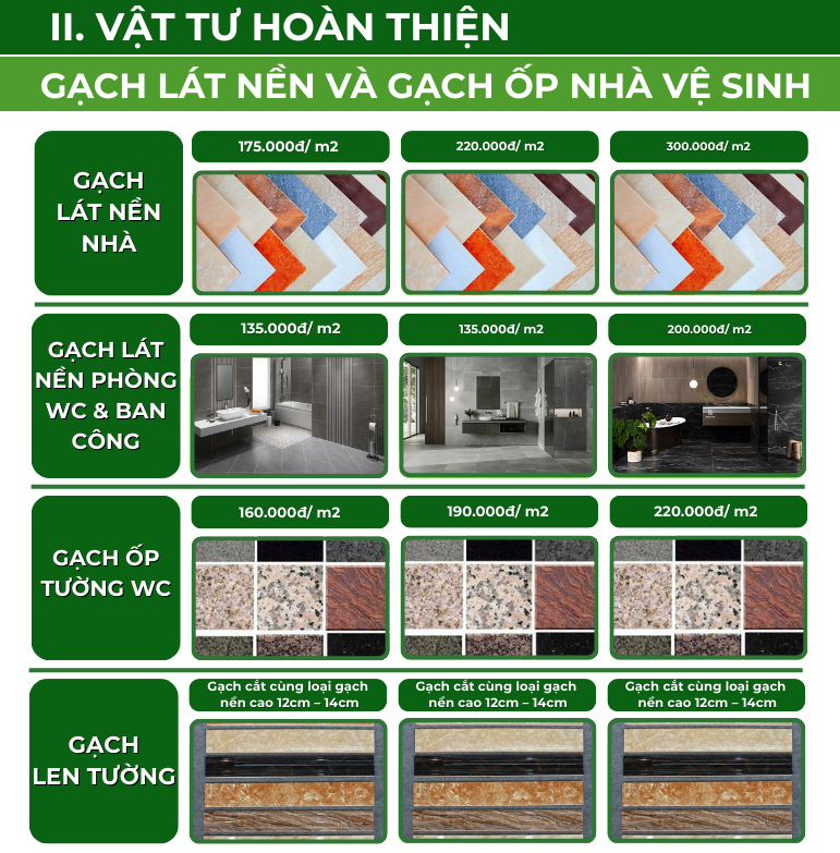 | Xây nhà phố 1 mặt tiền (Gói khá +) | 5.650.000đ/m2 – 5.950.000đ/m2 |