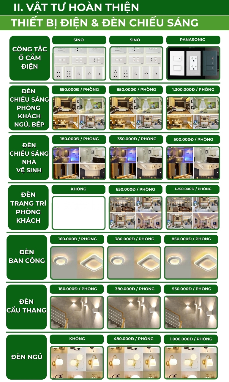 | Xây nhà phố 2 mặt tiền (Gói khá +) | 5.900.000đ/m2 – 6.100.000đ/m2 |