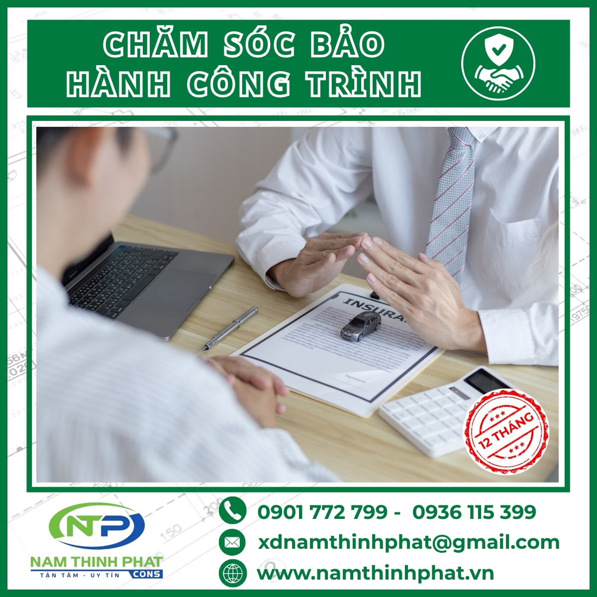 Thấu hiểu nhu cầu đó, Nam Thịnh Phát mang đến dịch vụ chăm sóc và bảo dưỡng công trình trọn gói, giúp gia chủ an tâm sử dụng lâu dài. Với mỗi công trình sau khi hoàn thiện, chúng tôi duy trì lịch chăm sóc định kỳ trong 01 năm, 06 tháng hoặc 12 tháng tùy gói dịch vụ, nhằm kịp thời kiểm tra và xử lý nếu có vấn đề phát sinh. Đội ngũ chăm sóc khách hàng của Nam Thịnh Phát luôn chủ động liên hệ, lắng nghe phản hồi để đảm bảo chất lượng công trình bền vững theo thời gian.