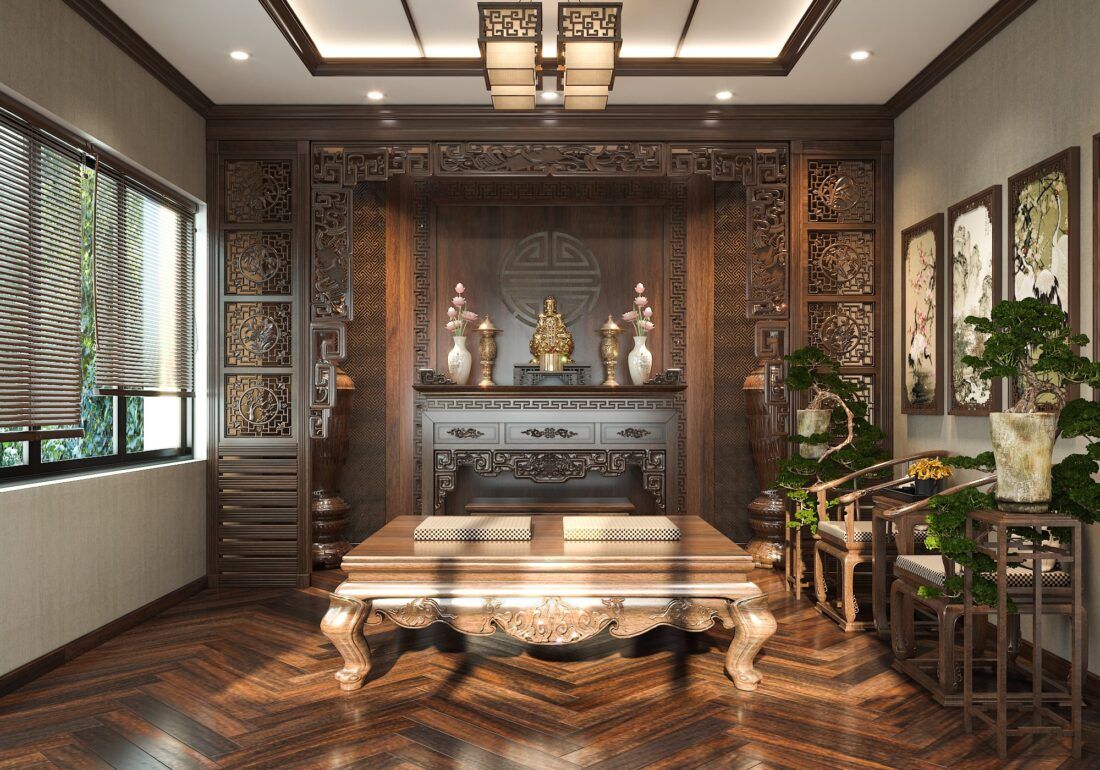 - Thi công nội thất phòng thờ: Phòng thờ là không gian mang yếu tố tâm linh, đòi hỏi sự chuẩn mực trong bố trí và lựa chọn vật liệu. Việc thi công cần được tư vấn kỹ lưỡng để đảm bảo hài hòa giữa truyền thống và không gian tổng thể.