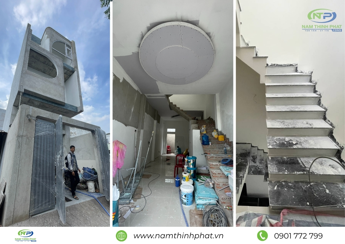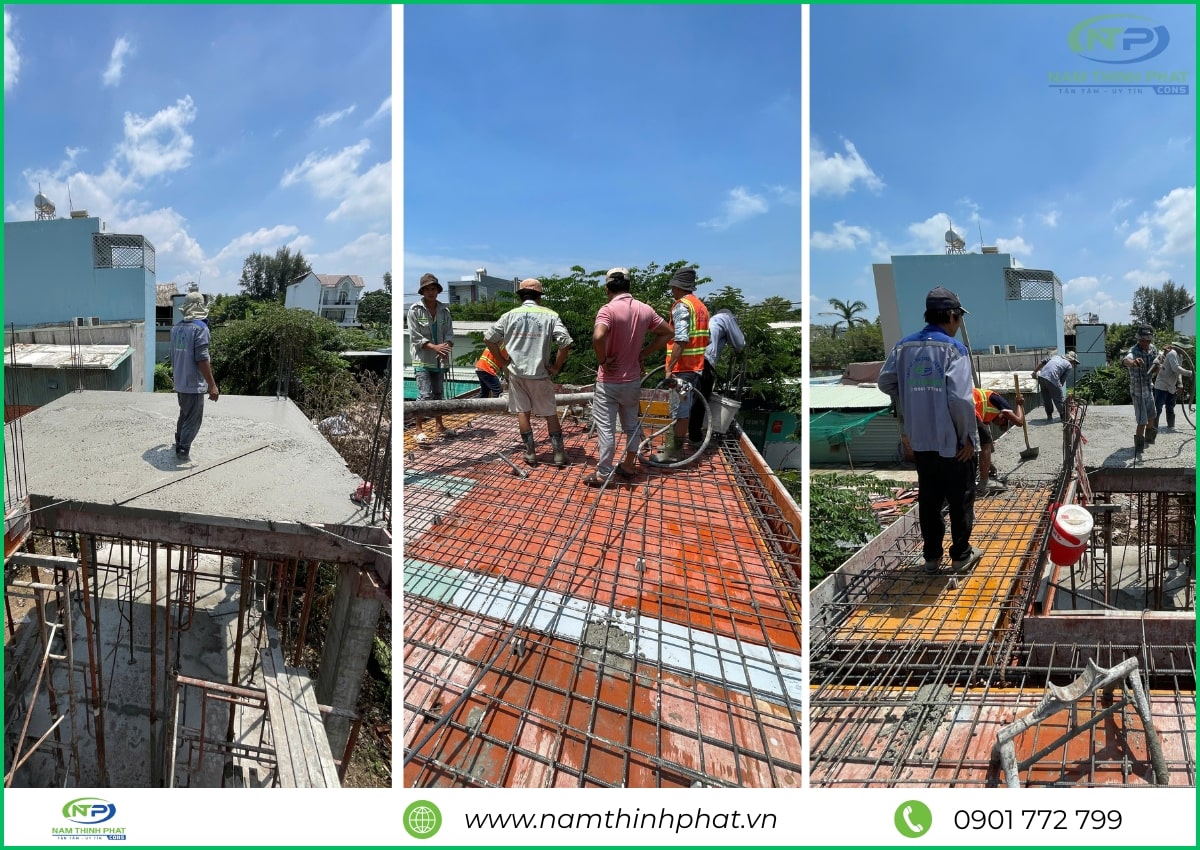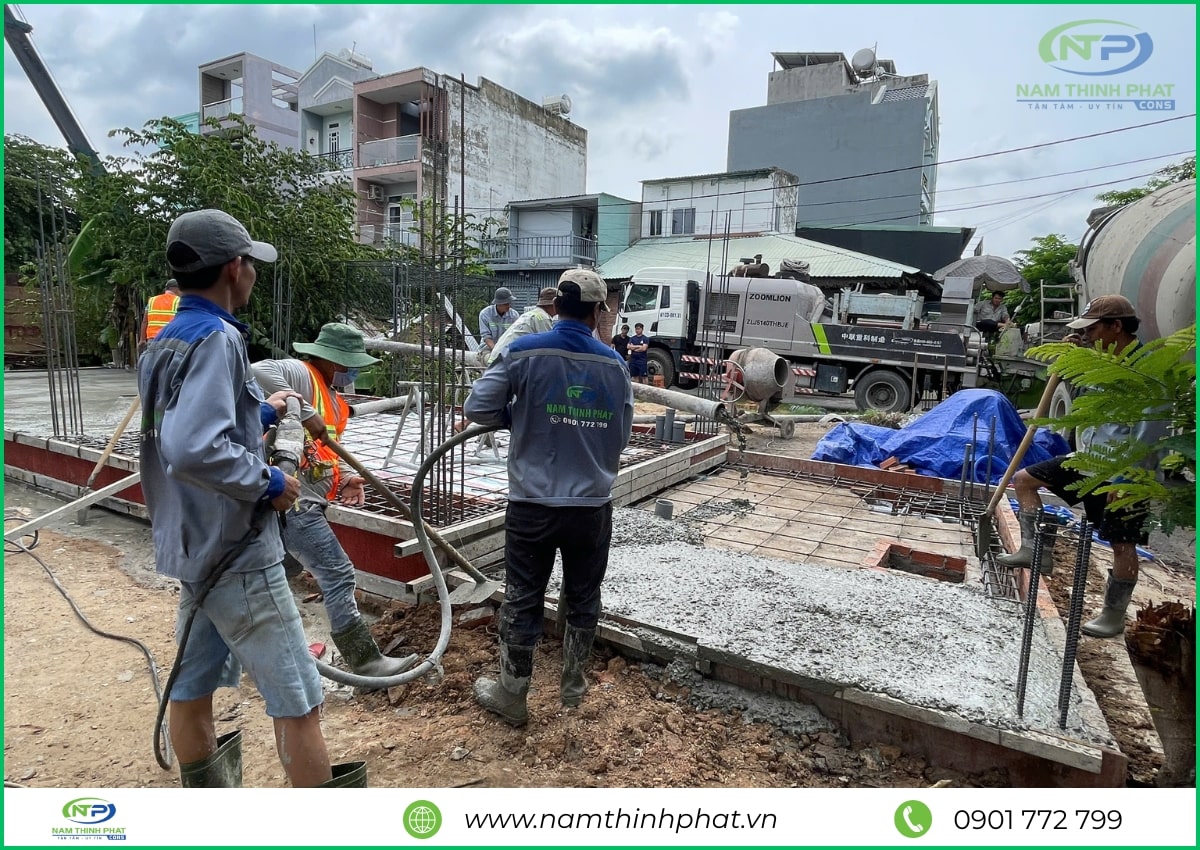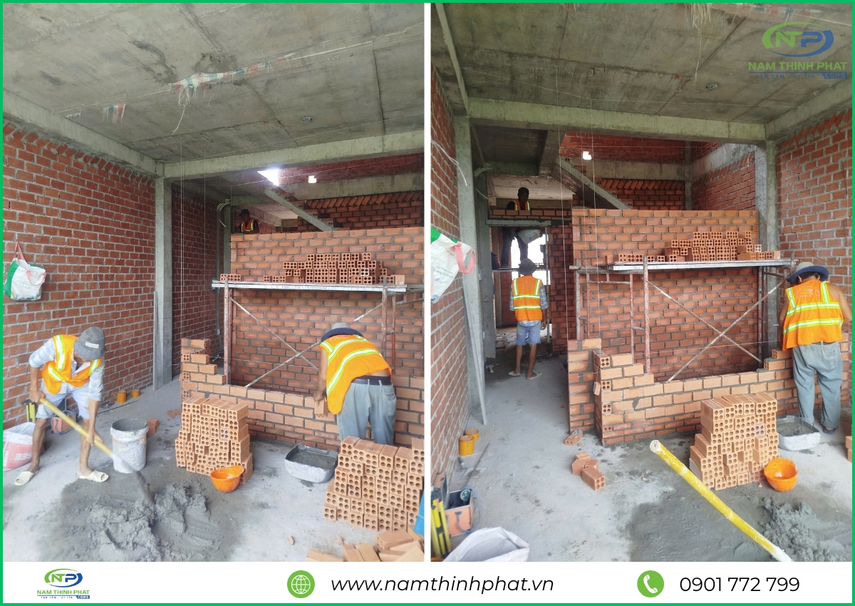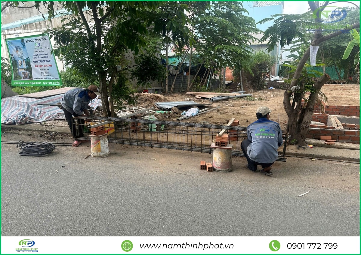 Giai đoạn thi công phần thô được xem là bước quan trọng nhất trong quá trình xây dựng, đóng vai trò như “bộ khung xương” chịu lực cho toàn bộ công trình. Hiểu rõ điều đó, đội ngũ Nam Thịnh Phát luôn tổ chức thi công bài bản, tuân thủ đúng quy trình kỹ thuật cho từng hạng mục: đổ bê tông móng, cột, dầm – xây tường bao – gia công cốt thép – đổ sàn bê tông,… Tất cả đều được giám sát nghiêm ngặt, bảo đảm đúng bản vẽ thiết kế và tiêu chuẩn chất lượng. Mỗi công đoạn đều được thực hiện tỉ mỉ, chính xác, nhằm đảm bảo kết cấu công trình bền vững, là nền tảng vững chắc cho các hạng mục hoàn thiện sau này.