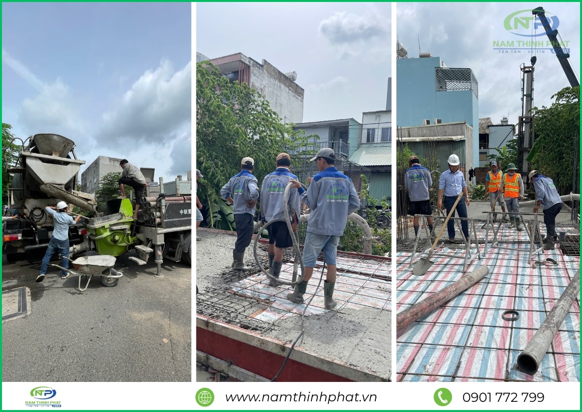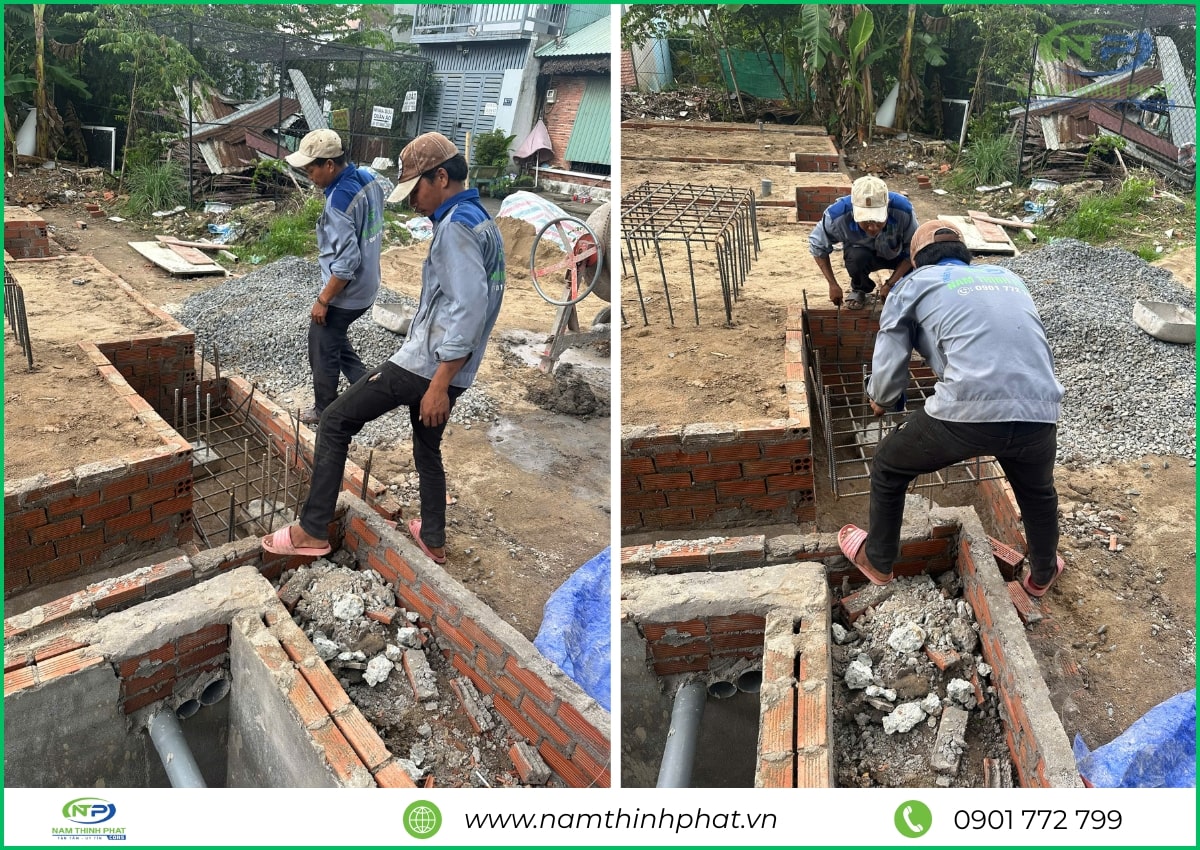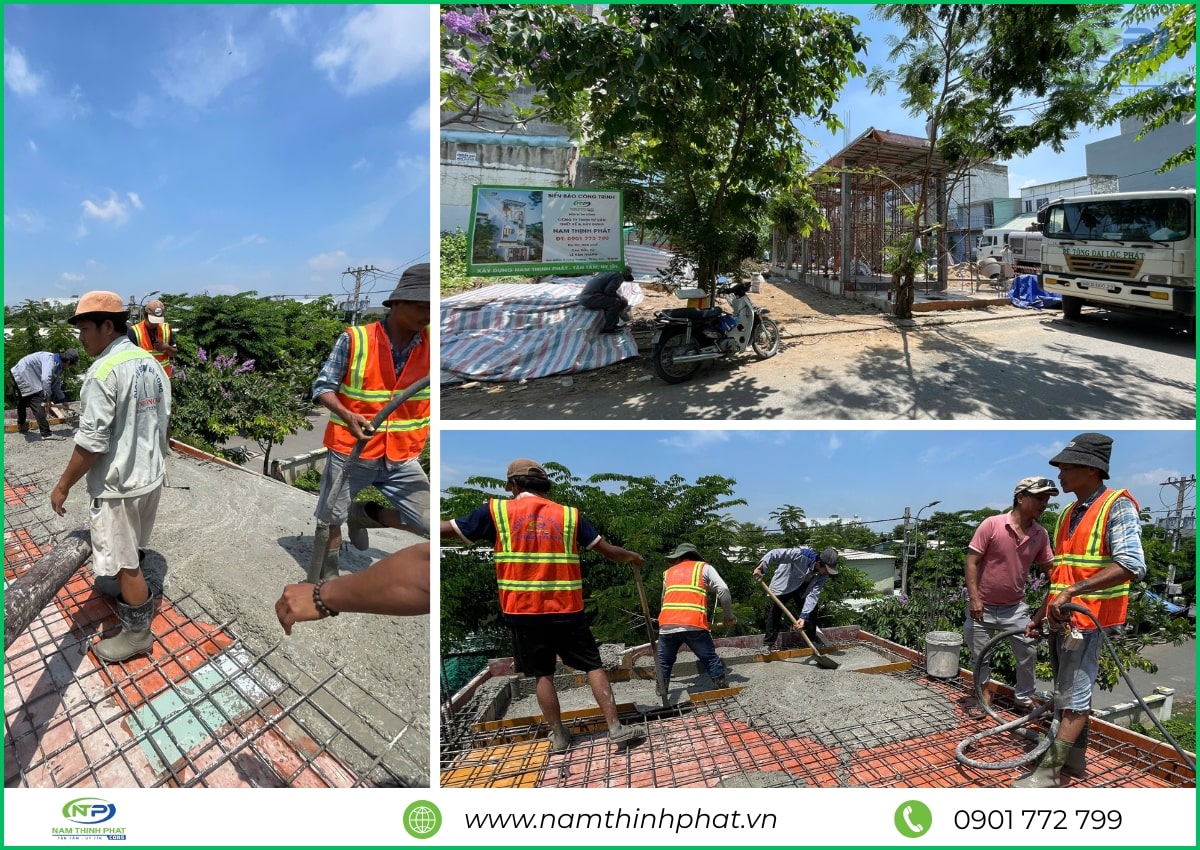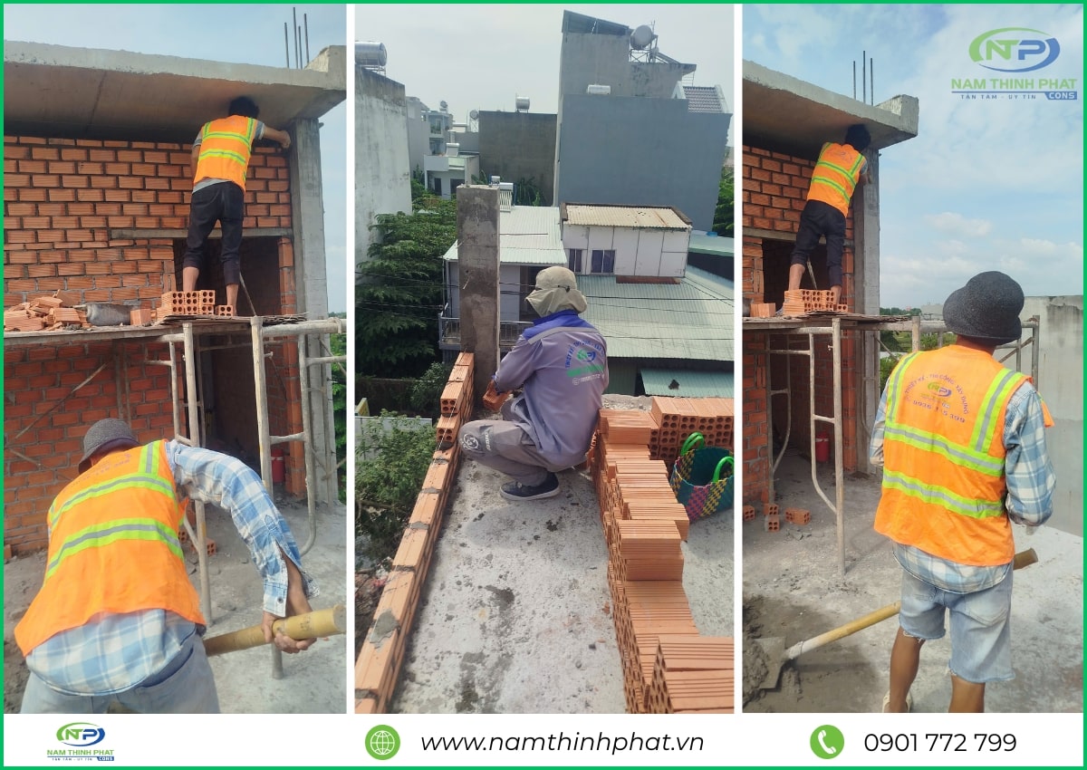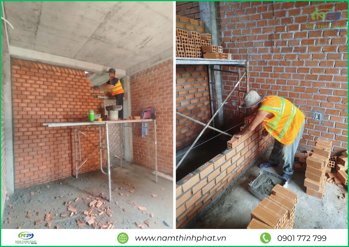 Giai đoạn thi công phần thô được xem là bước quan trọng nhất trong quá trình xây dựng, đóng vai trò như “bộ khung xương” chịu lực cho toàn bộ công trình. Hiểu rõ điều đó, đội ngũ Nam Thịnh Phát luôn tổ chức thi công bài bản, tuân thủ đúng quy trình kỹ thuật cho từng hạng mục: đổ bê tông móng, cột, dầm – xây tường bao – gia công cốt thép – đổ sàn bê tông,… Tất cả đều được giám sát nghiêm ngặt, bảo đảm đúng bản vẽ thiết kế và tiêu chuẩn chất lượng. Mỗi công đoạn đều được thực hiện tỉ mỉ, chính xác, nhằm đảm bảo kết cấu công trình bền vững, là nền tảng vững chắc cho các hạng mục hoàn thiện sau này.