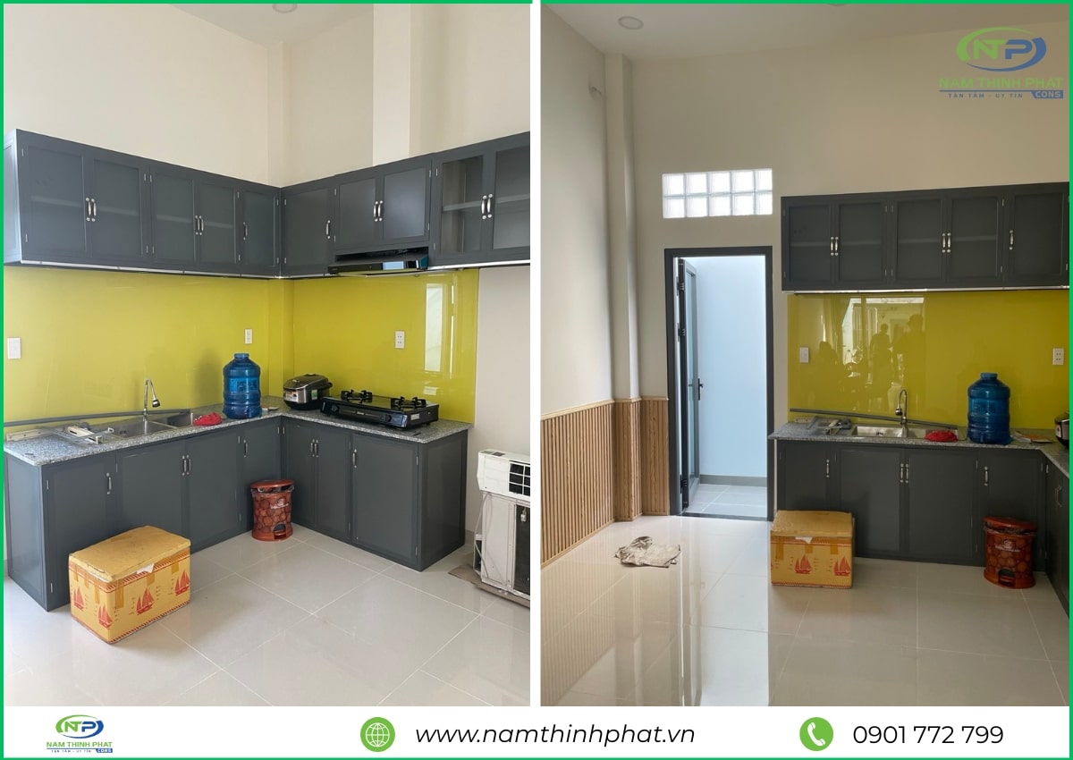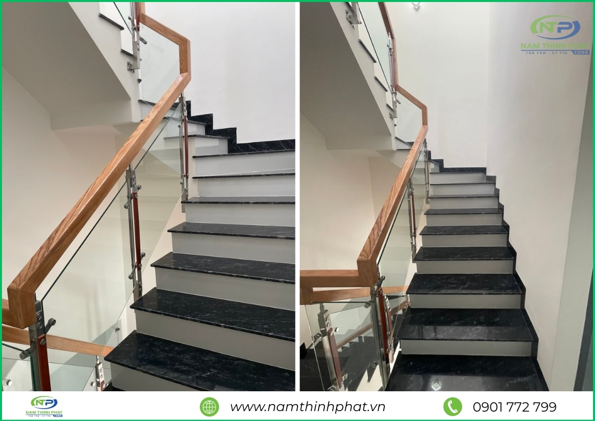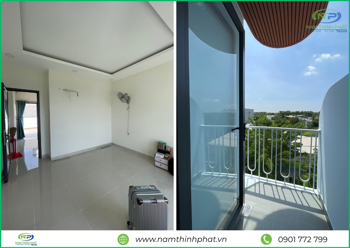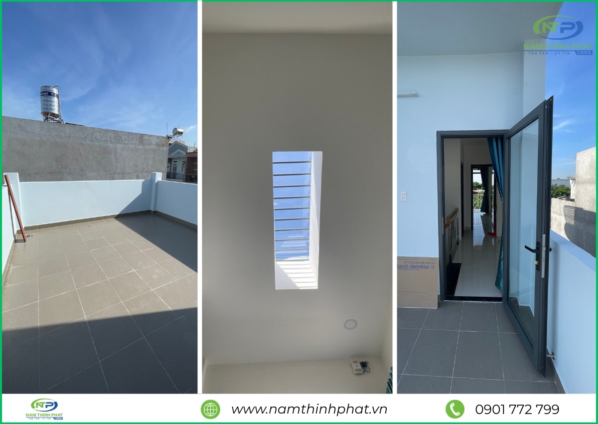 Trong giai đoạn hoàn thiện, đội ngũ Nam Thịnh Phát đã tiến hành thi công các hạng mục quan trọng như ốp lát gạch, sơn nước, lắp đặt cửa nhôm kính, hệ thống điện – nước âm tường, trần thạch cao và các chi tiết trang trí nội thất khác. Mọi công đoạn đều được thực hiện tỉ mỉ, đúng kỹ thuật, đảm bảo cả tính thẩm mỹ lẫn độ bền lâu dài cho công trình. Từ màu sơn, loại gạch, đến tay vịn cầu thang đều được lựa chọn kỹ lưỡng để hài hòa tổng thể kiến trúc và nâng tầm không gian sống. Nhờ sự chăm chút trong từng chi tiết, ngôi nhà 1 trệt 2 lầu Thủ Đức của anh Thảng sau khi hoàn thiện đã trở nên hiện đại, tiện nghi và bền vững, mang lại cảm giác thoải mái, an toàn cho cả gia đình.