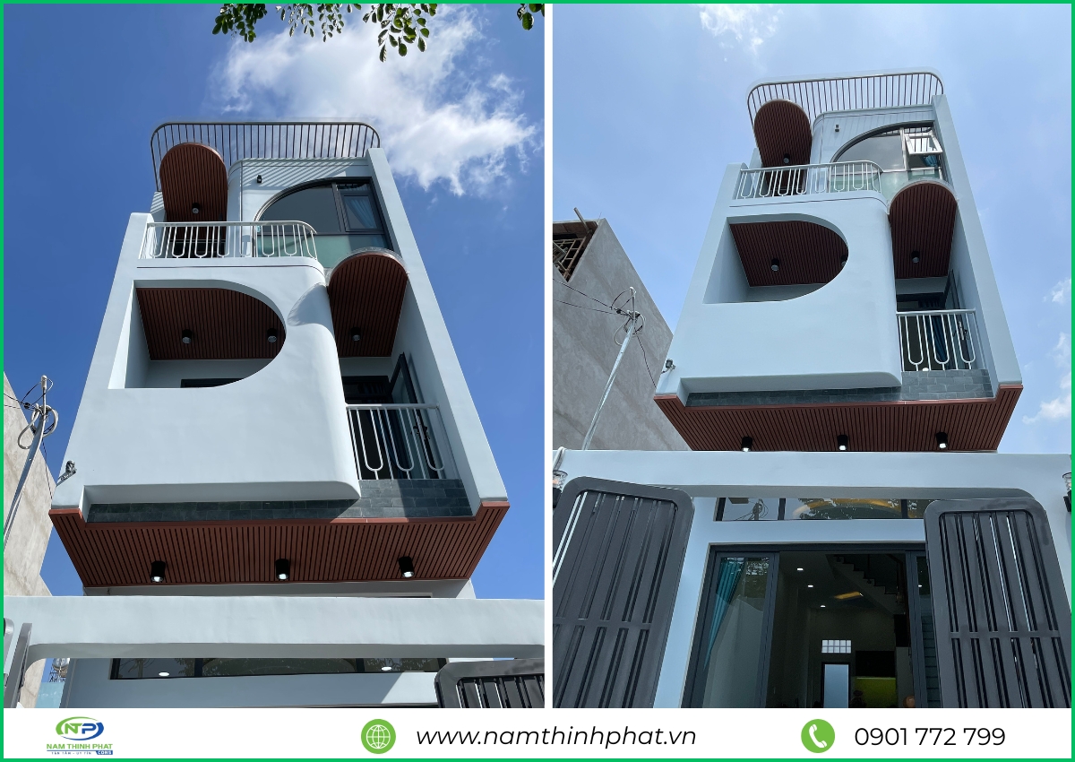 Nam Thịnh Phát tự hào bàn giao công trình nhà phố 1 trệt 2 lầu với diện tích 4x15m cho gia đình anh Thảng tại Thủ Đức. Sau hơn 3 tháng thi công trọn gói nhà 1 trệt 2 lầu liên tục, từ phần móng, phần thô cho đến hoàn thiện nội – ngoại thất, mọi hạng mục đều được thực hiện nghiêm ngặt theo tiêu chuẩn kỹ thuật và cam kết chất lượng cao nhất. Công trình hoàn thiện không chỉ bền vững về kết cấu mà còn nổi bật về thẩm mỹ, với tông trắng hiện đại kết hợp cửa kính lớn, mang đến ánh sáng tự nhiên và cảm giác thoáng đãng cho toàn bộ ngôi nhà. Khu tum sân thượng trở thành không gian thư giãn lý tưởng – nơi cả gia đình có thể hít thở không khí trong lành và tận hưởng khung cảnh thành phố mỗi buổi tối.