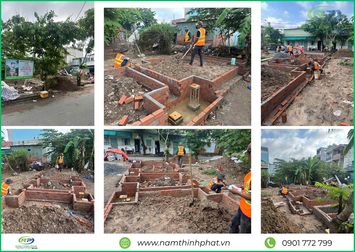 Thi công xây móng nhà 1 trệt 2 lầu Thủ Đức