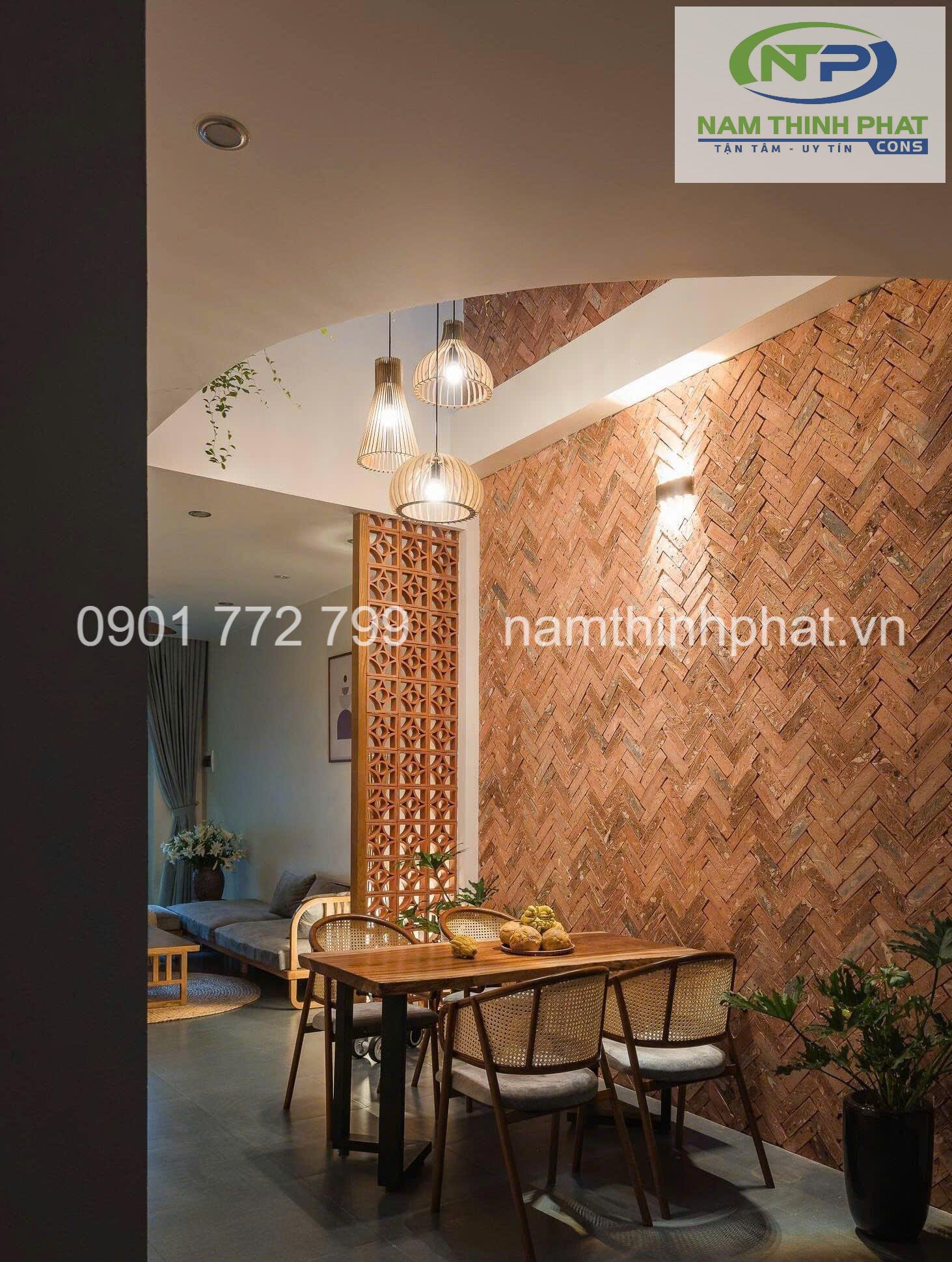 Tường gạch thô với màu nâu đỏ mang đến một cảm giác gần gũi và chân thật. Đây là yếu tố không thể thiếu trong thiết kế công nghiệp, giúp không gian sống trở nên sống động và thể hiện rõ nét phong cách. Việc giữ nguyên vẻ đẹp tự nhiên của gạch không chỉ tạo nên sự thô mộc mà còn mang lại chiều sâu cho căn phòng.